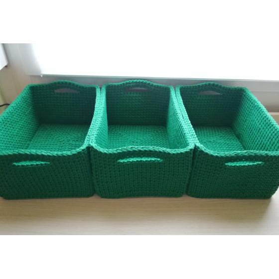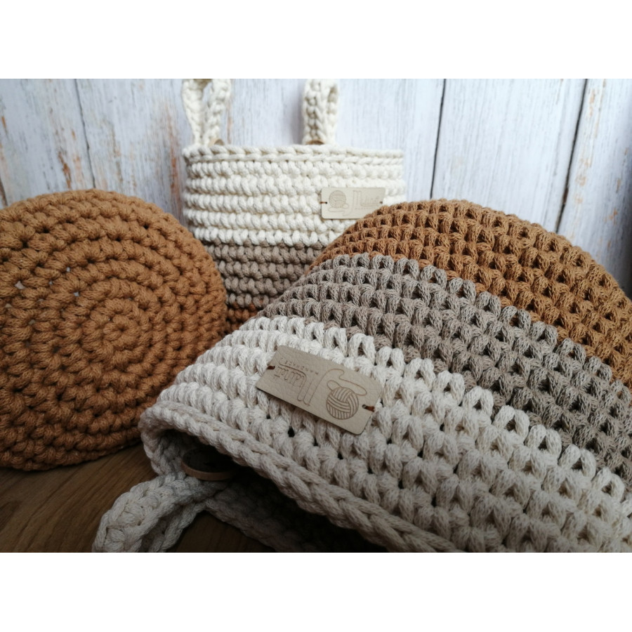3 mm-es zsinórfonalból horgolt dekoratív tároló kosárka. Igazából bármit, bárhol tárolhatsz benne: a babaszobában az ágyra akasztva, a kocsiban a fejtámla alá, a fürdőszobában, vécében felakasztva, a konyában egy rúdra téve apróságok tárolására.